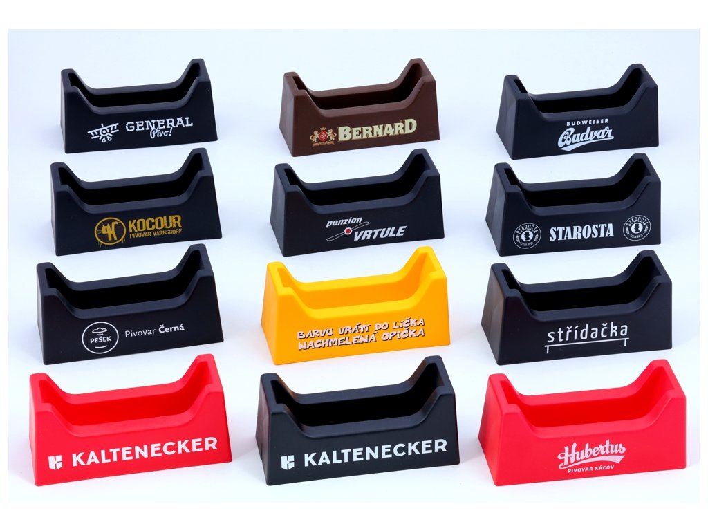 Plastový stojánek na pivní tácky čtvercové i kulaté včetně potisku vašeho loga, hlášky či obrázku. Do stojánku se vejde maximálně 13 kusů pivních tácků. Vyrábíme v mnoha barevných variantách, cena stojánku s potiskem od 46,28 Kč/ks bez DPH.